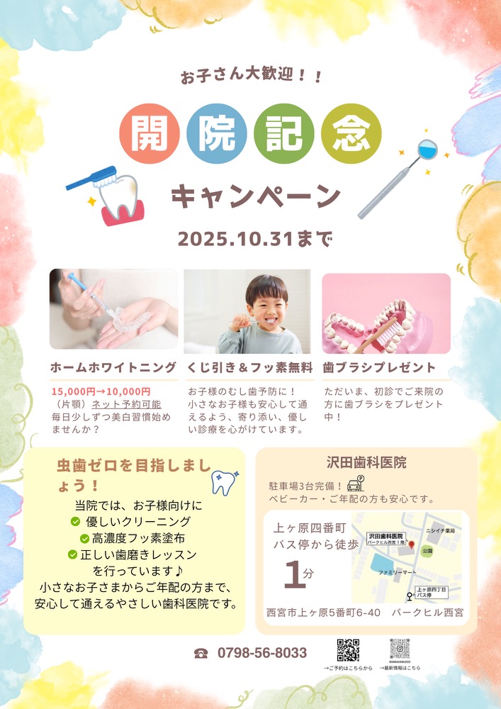 沢田歯科医院では、8月の開院を記念して、開院記念キャンペーンを実施しております。