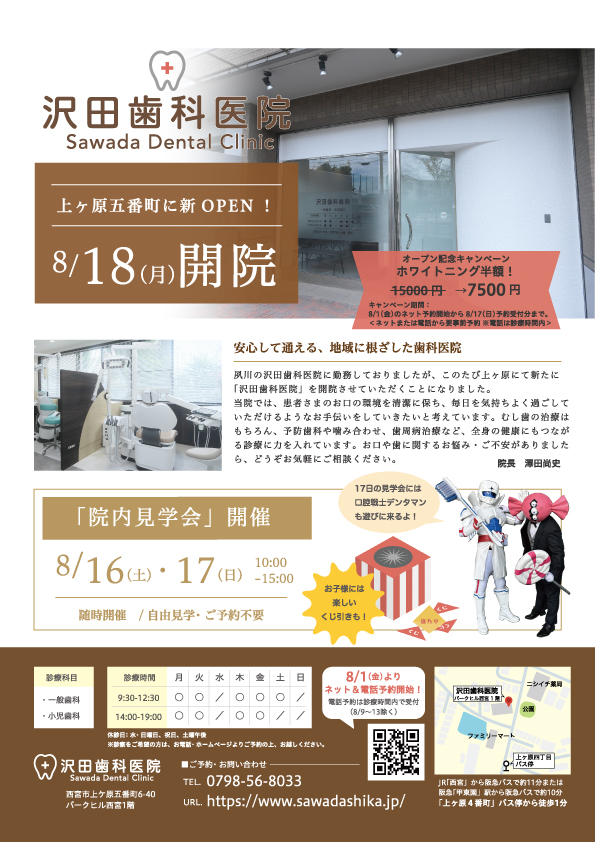 8/18新規開院のお知らせと院内見学会(8/16-17)のご案内